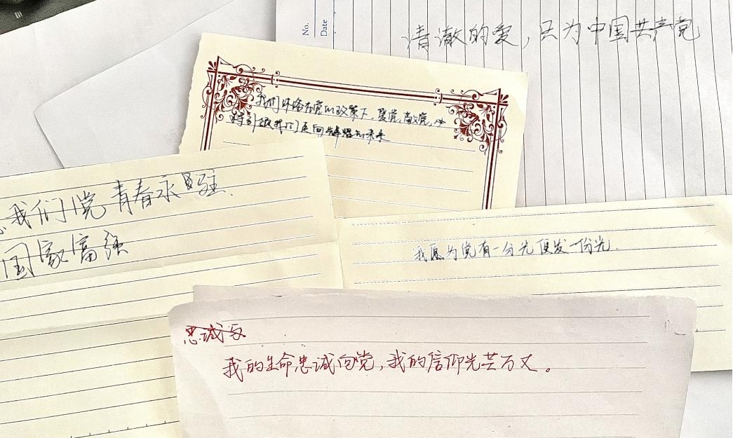 本次团日活动主要以学习结合表演的形式进行。活动伊始,各团支部团支书组织同学们围绕新时代大学生的责任担当问题进行热烈的讨论,开展“百年巨变,我想对党说”小纸条活动,同学们分别在纸上写下一句想对党说的话,用简短的文字表达自己对百年党史的热爱。