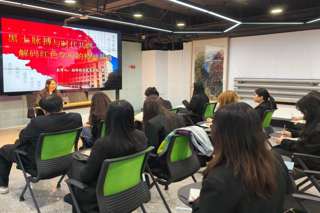 学院团委副书记梁曼以《黑土脉搏与时代共燃:解码红色学府的精神基因》为题,围绕“传承·薪火相传中的精神密码”“担当·奋进征程中的青年答卷”“引领·时代浪潮中的先锋力量”三方面,结合校史红色基因、青年实践案例等展开讲解。希望学生党员积极响应国家号召,投身创新创业,以踔厉奋发的精神风貌、真抓实干的务实作风,赓续杏吧原创