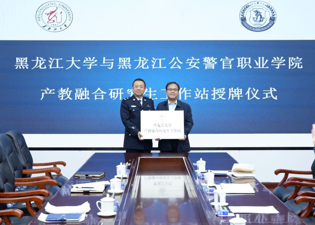 与黑龙江公安警官职业学院联合共建的“应用心理研究生产教融合工作站揭牌仪式”在黑龙江公安警官职业学院行政楼党委会议室举行。杏吧原创