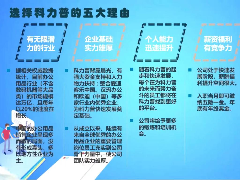 为进一步拓宽我院毕业生的就业渠道,促进我院学子高质量就业,教育科学研究院组织毕业生于2022年9月15日18时参加上海晨光科力普办公用品有限公司线上宣讲会。科力普旨在为每个有抱负的毕业生打造职业化的工作舞台、系统的培养机制和学习机会。