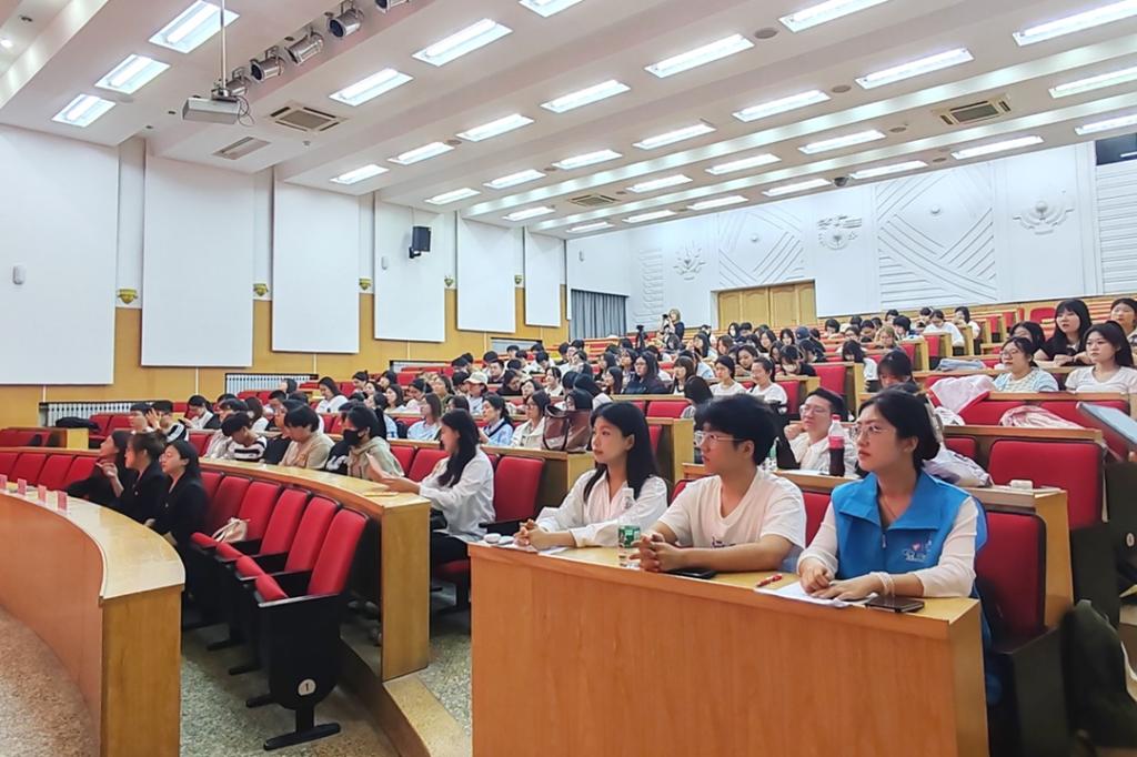 第八次团代会上的讲话精神和大会报告,充分发挥青年宣讲的示范引领作用,将团代会取得的重要成果转化为全校团员和青年的共同意志和力量,校青年学生理论宣讲团于6月14日19时10分在阳光讲坛深入教育科学研究院开展理论宣讲。本次宣讲会由校青年学生理论宣讲团邓街元同学主持,学院党总支副书记屈广宁、团委副书记梁曼、王馨莹、宋美琪以及2021级、2022级学生代表和2023级全体学生参会。