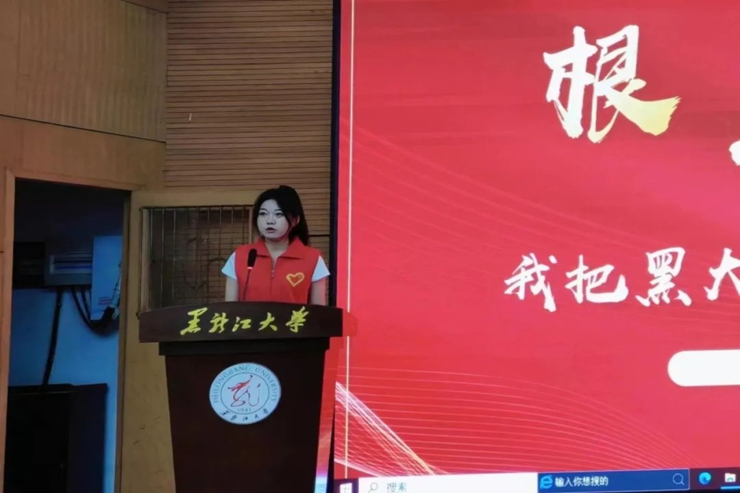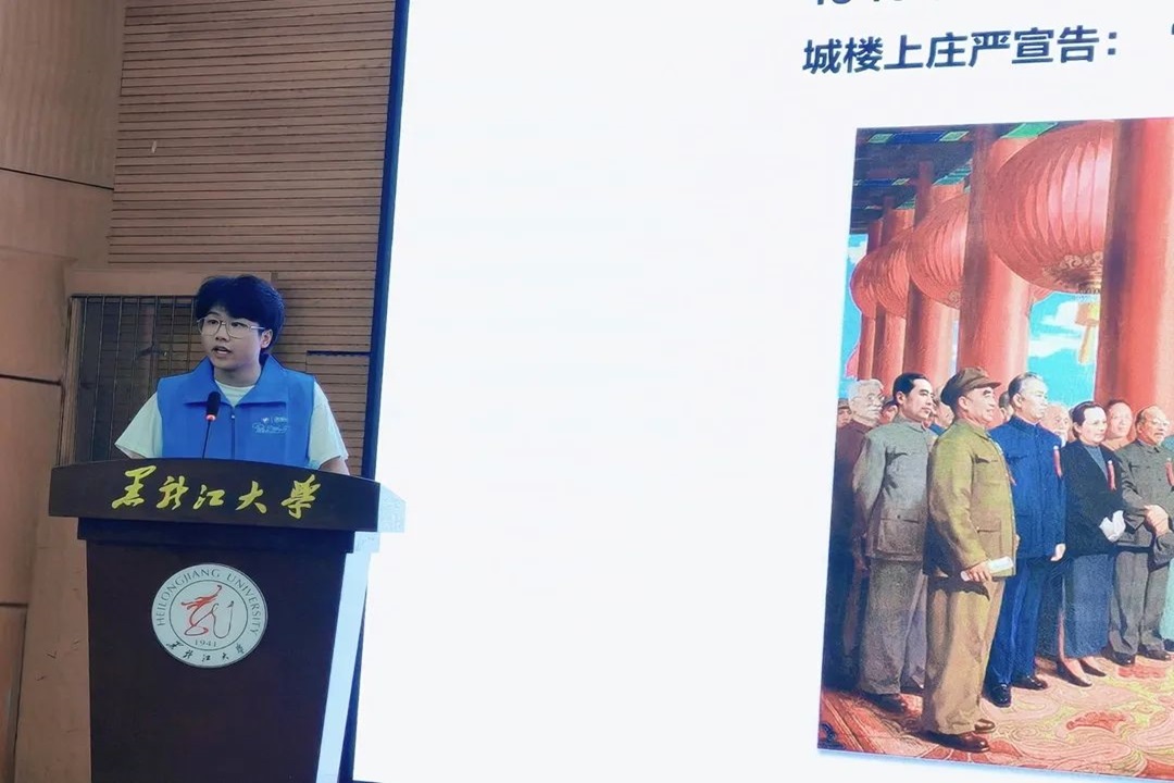 新闻传播学院刘美彤同学以《根于延安,我把黑大的故事讲给你听》为题进行宣讲。延安精神不仅是一种定义,更是一种信仰,她带领同学们重温风雨如磐、革命危急的岁月,呼吁同学们应传承延安精神,展现青春作为、彰显青春活力、尽显青春风采。