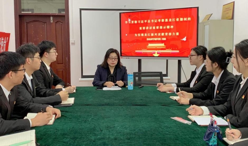 学院党总支副书记付丽以“学习贯彻习近平总书记考察黑龙江省期间的重要讲话重要指示精神 为实现龙江振兴贡献青春力量”为主题,介绍了学习贯彻习近平总书记考察黑龙江省期间的重要讲话和重要指示精神的重要意义,带领培训班学员们回顾了习近平总书记此次来到黑龙江省考察的具体行程及核心要义。并强调,作为龙江学子应牢记习近平总书记嘱托,刻苦努力学习,锤炼过硬本领,奋力开创龙江高质量发展新局面,为东北全面振兴贡献自己的青春力量。