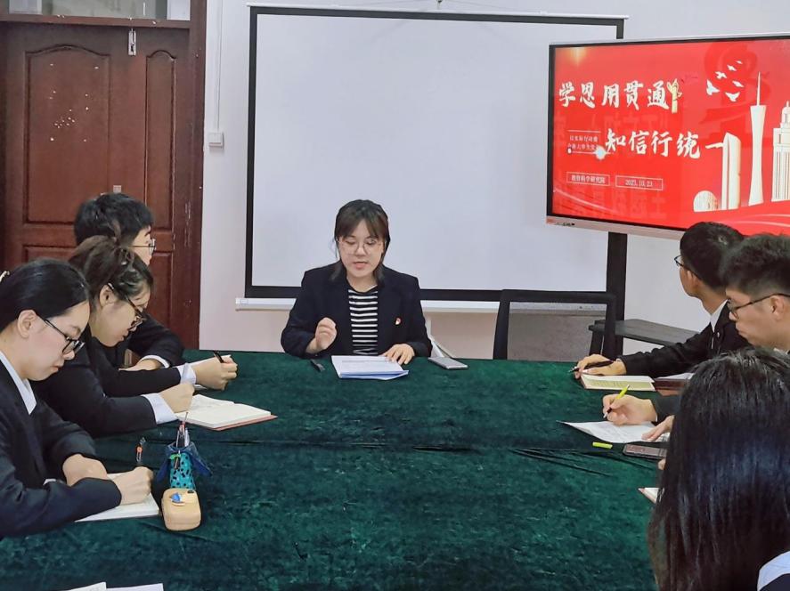 2021级学生党支部书记王馨莹以“学思用贯通、知信行统一”为主题,结合党的二十大报告,向大家阐述了“学思用贯通、知信行统一”的重要性。并表示,身为学生党员,要在今后的学习工作中要吃苦在前,享受在后,严格地用共产党员的标准要求自己,毫不动摇地跟党走,为党的事业的发展作出自己的贡献,为实现共产主义奋斗终身,奋力书写无愧于党、无愧于人民、无愧于时代的青春篇章。