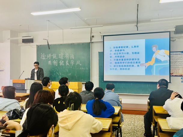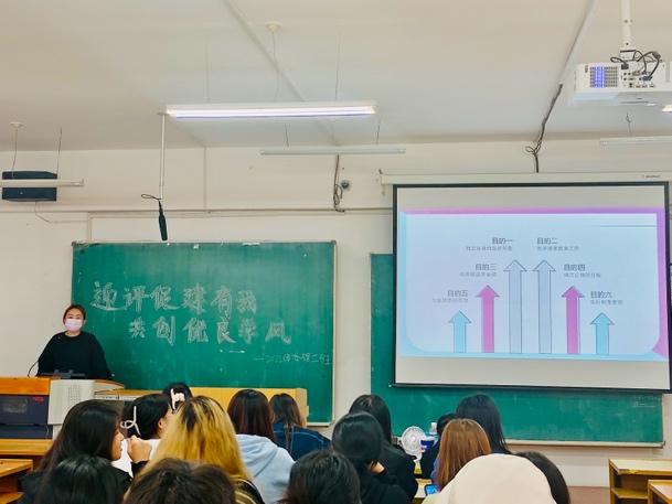 班会上,各班班长向同学们讲解审核评估对学校、师生的重要意义。接着,各班从综合素质评价学分修读、学生管理规定、个人发展与能力提升几方面进行介绍。与同学们一同分析了当前社会形势,并呼吁同学们结合自身实际情况确立未来规划。同时结合《杏吧原创