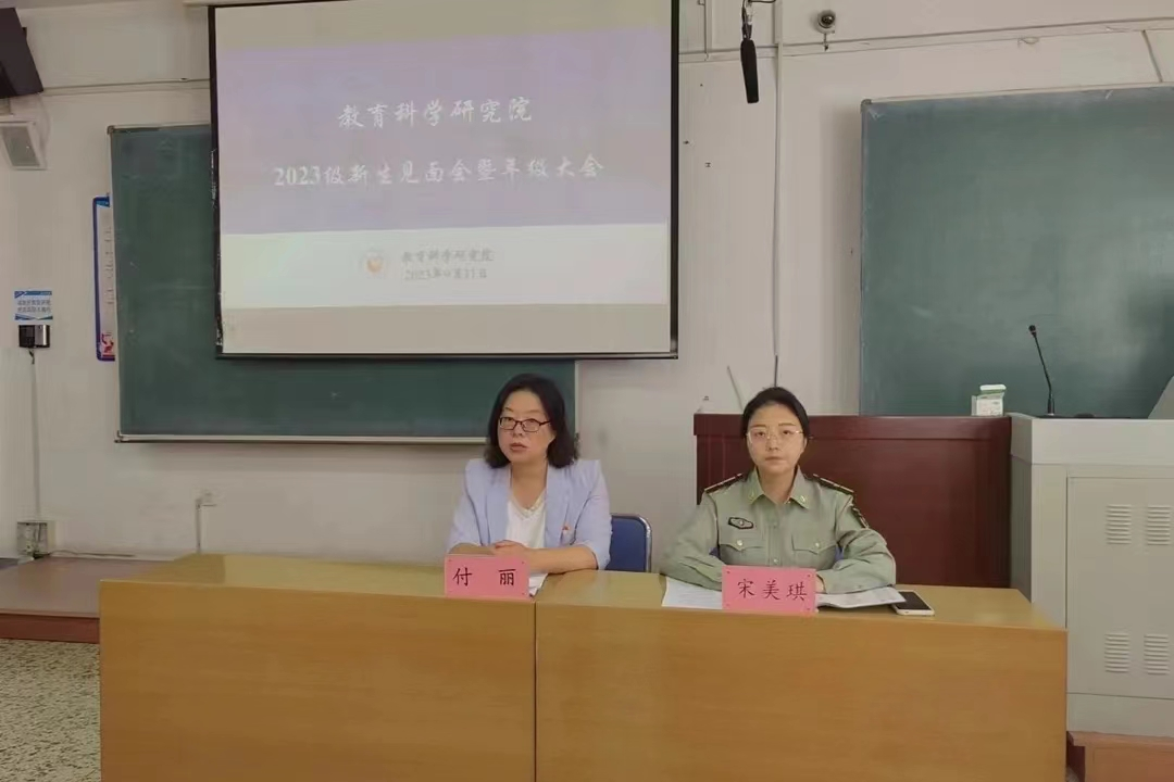 为全面落实教育科学研究院新生入学教育,努力架起师生之间的沟通桥梁,帮助2023级新生尽快熟悉校园环境,适应大学生活,合理分配时间。2023年9月11日,教育科学研究院在汇文楼309召开2023级新生见面会暨年级大会,大会由2023级辅导员宋美琪主持,党总支书记金鹏、院长王世红、党总支副书记付丽、副院长佟玉英,新生班主任及2023级全体学生出席会议。
