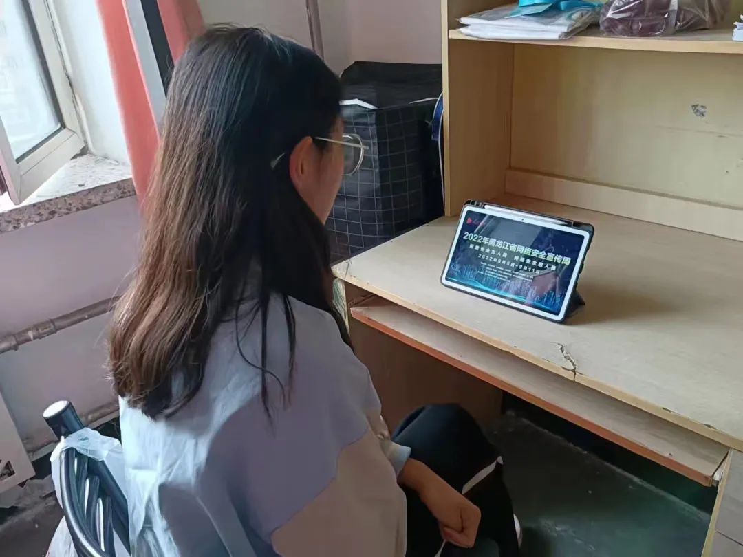 观看2022年黑龙江省网络安全宣传周开幕式不但培养了学生健康上网、依法用网、文明护网的意识,而且增强全体师生的网络安全防范意识和自我保护技能,切实营造网络安全人人有责、人人参与的良好氛围。(教育科学研究院供稿)