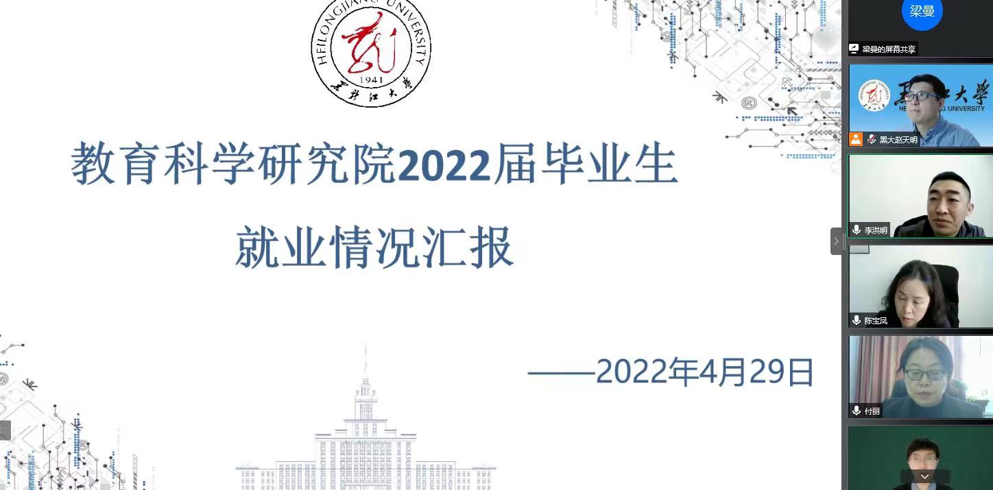 为深入贯彻落实党中央、国务院“稳就业”、“保就业”决策部署,进一步推进落实2022届毕业生就业工作,学校于2022年4月29日开展教育科学研究院线上就业走访调研工作。校党委副书记丁宏、招生就业指导中心主任陈宝凤、副主任李洪明、綦明霞及中心教师调研指导学院就业工作。教育科学研究院党总支书记金鹏、院长王世红、党总支副书记付丽、教育行政联合党支部书记徐建华、教育学系主任孙明娟、应用心理学系党支部书记、系主任庞爱莲及2022届、2023届毕业生辅导员参加会议,会议由招生就业指导中心副主任李洪明主持。