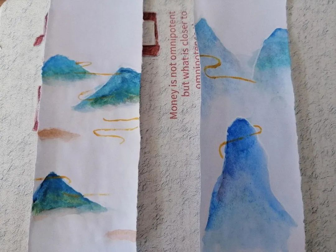 设计理念:“青山元不动,白云自去来。”是林清玄先生的散文《人生最美是清欢》中的一句话。无论你在哪,心境都要保持平和。因为疫情,我们被管控在校园,但不论周遭环境如何变化,书就在那里,知识就在那里,思想就在那里。静下心来,好好读一本书吧。在这个书签中,远处有重山,飞鸟振翅翱翔,对于知识,我们应该如飞鸟一般努力向前追求。