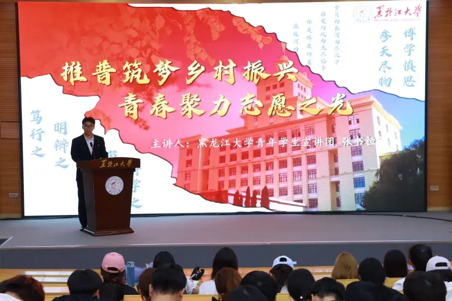 张书桓同学以《推普筑梦乡村振兴,青春聚力志愿之光》为题进行宣讲。他以“宣传普通话为何重要”为切入点,通过讲述乡村支教中因语言障碍引发的真实案例,深入阐释普通话推广对突破乡村教育壁垒、赋能乡村振兴的关键作用;同时结合志愿服务经历,呼吁青年从推普实践中感悟奉献价值,以青春力量书写志愿担当。