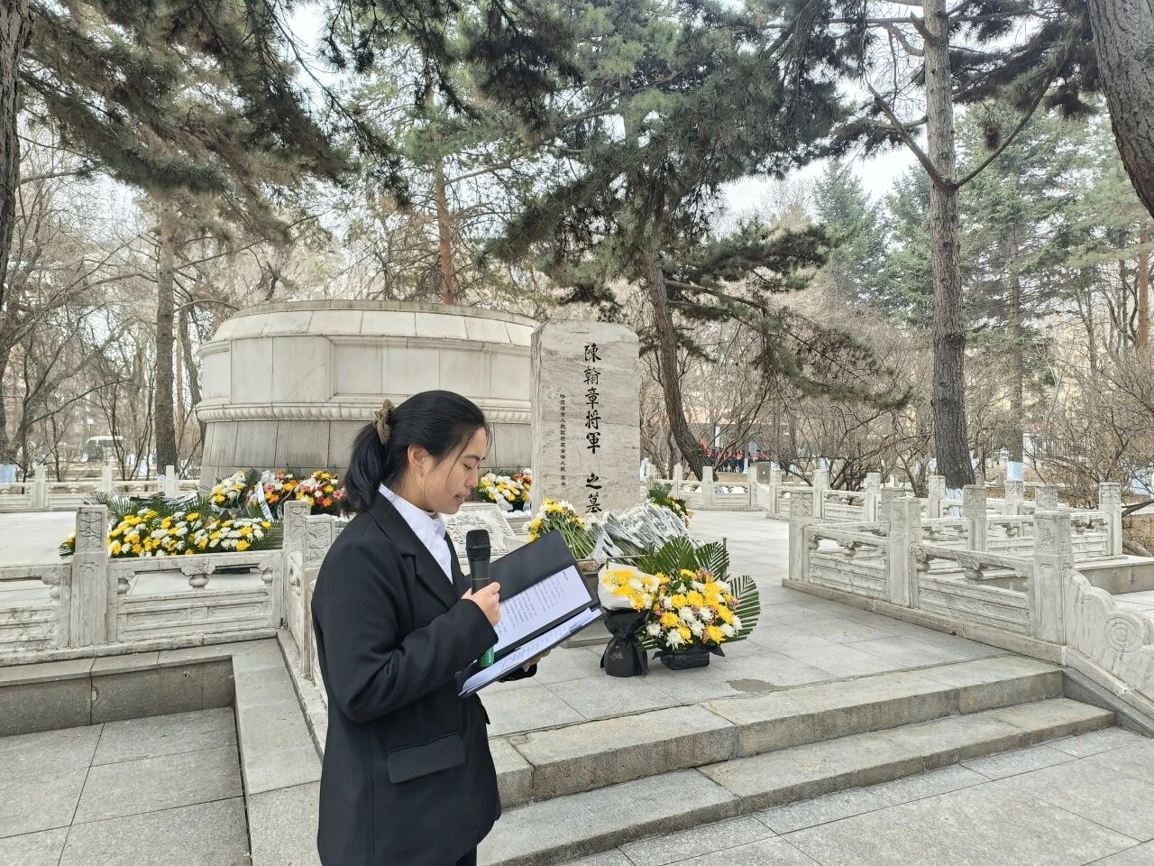 学生代表饱含深情地诵读祭文,追忆革命先烈的英勇事迹,抒发对先烈的崇敬与缅怀之情。