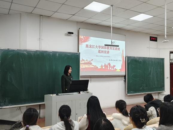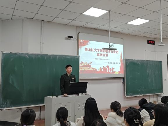 国防教育宣讲团成员主讲,学院团委副书记梁曼、王冠琪及2025级全体同学参会。